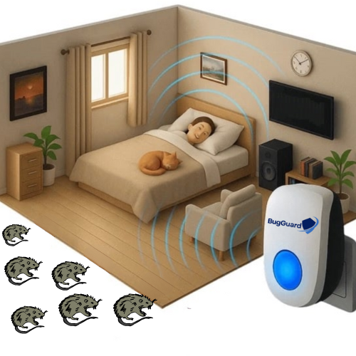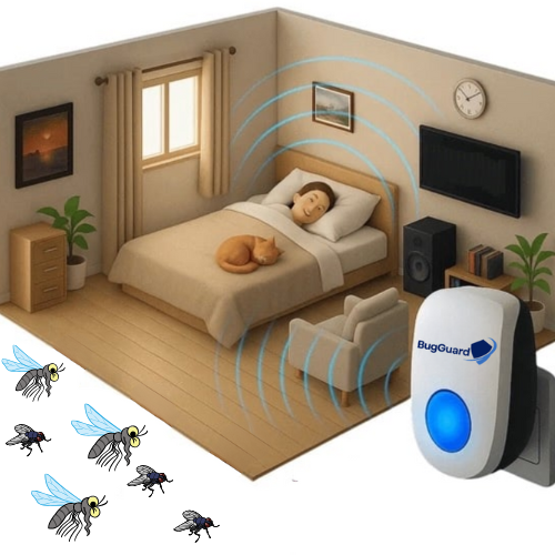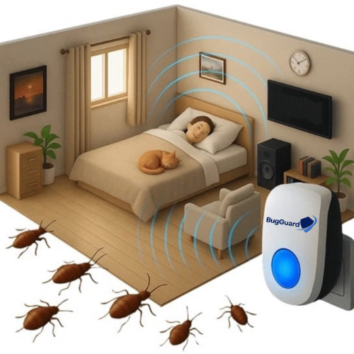 Our advanced plug-in device is specially designed to repel insects, rodents, and even dust mites—keeping your home safer, cleaner, and completely pest-free, without the use of chemicals or traps. With extensive coverage and 24/7 protection, BugGuard™ adapts to any living space.