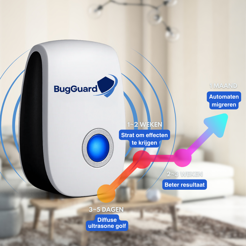 BugGuard™ combines ultrasonic waves, electromagnetic pulses, anti-rodent technology, and insect-repelling signals – protecting your home from mites, cockroaches, rodents, mosquitoes, and more.
