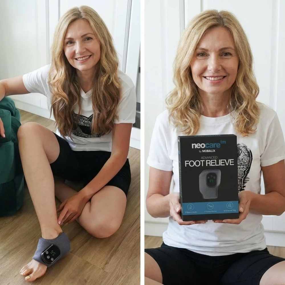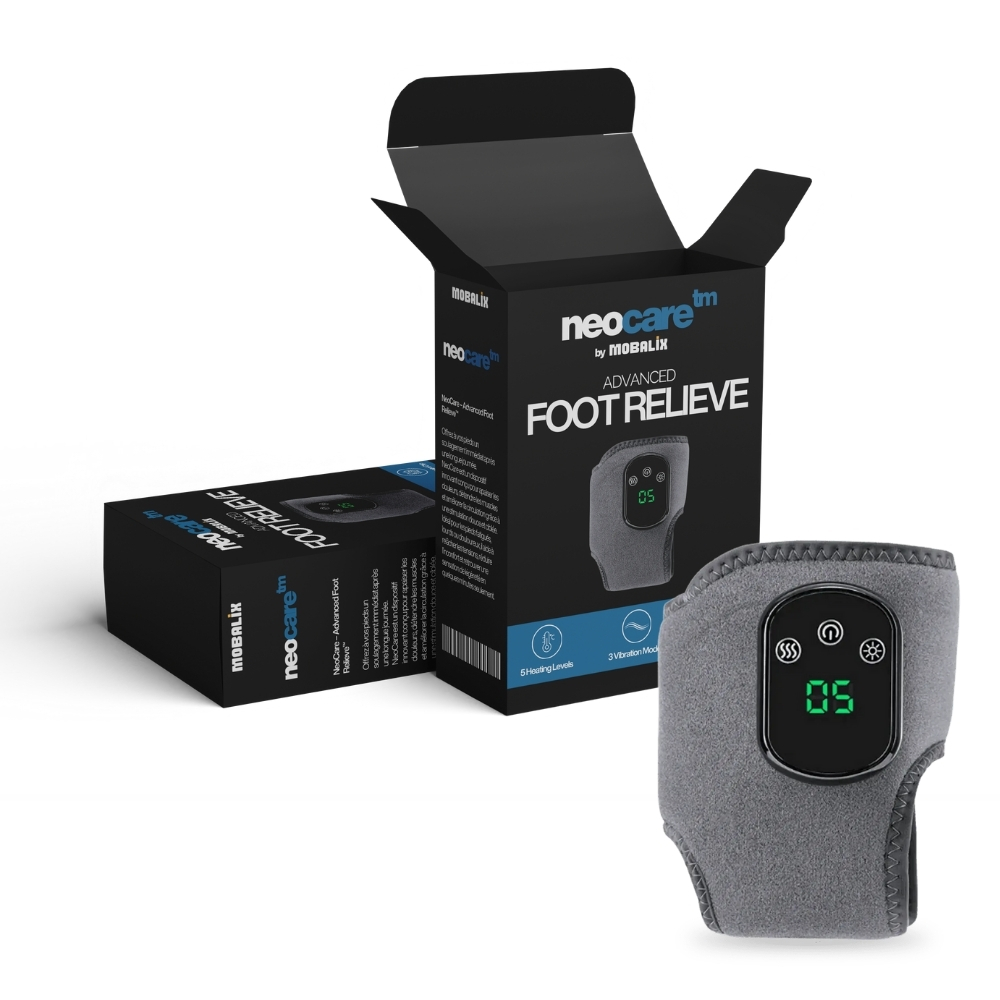 NeoCare⢠is a foot massage device from Mobalix designed to promote daily comfort. It combines gentle massage, warmth, and relaxation to help support the feet after a long day of standing or walking.