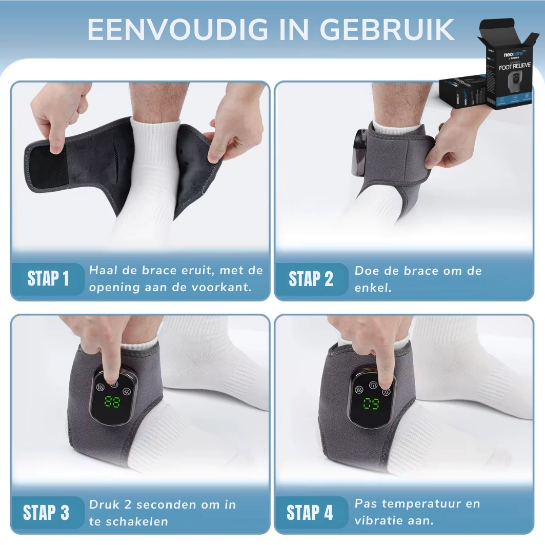 NeoCare⢠works with a combination of: š„ Soothing warmth to relax the muscles š Gentle massage to relieve tension 𦶠Stimulating relaxation to provide a sense of comfort This creates a pleasant and relaxing experience that you can easily use at home.