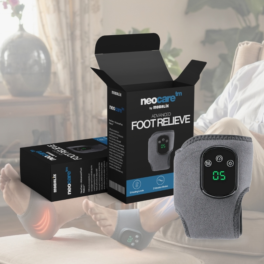 NeoCare⢠is a foot massage device from Mobalix designed to promote daily comfort. It combines gentle massage, warmth, and relaxation to help support the feet after a long day of standing or walking.